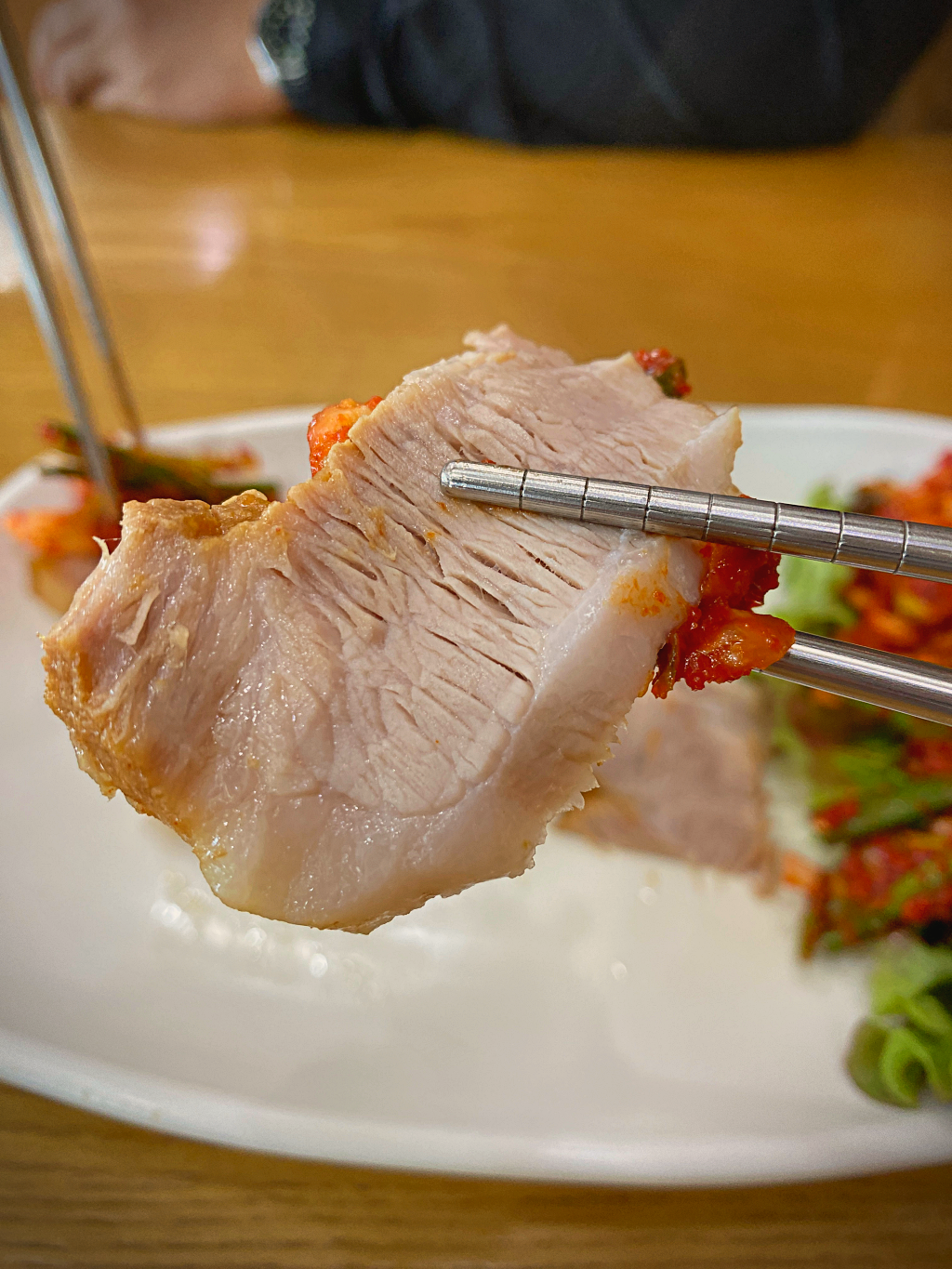 누가 뭐래도 빨간 무말랭이를 올려서 상추에 싸먹는게 제일 맛나다. 뭘 넣고 삶았길래 잡냄새도 없고 입에서 살살 녹는 걸까. 한 접시를 시킬걸 뒤늦게 후회해 본다.