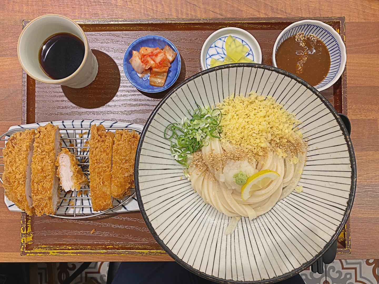 돈가스와 붓카게 우동세트를 시켰는데 양이 상당하다. 나중에 옆테이블을 봤더니 돈가스메뉴를 시키면 밥과 샐러드가 조금더 추가되서 나온다. 오늘 과식하겠는데.